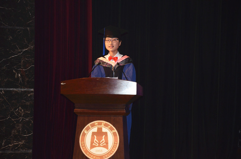 化学与化工学院朱万诚老师、翻译学院夏云老师分别代表研究生导师,对研究生表达了祝贺和希望,希望他们不负母校和老师培养,把国家、社会和家庭的责任但在肩上,将“仁义礼智信”作为做人、做事、做学问的准则。文学院李励、政治与公共管理学院的张晓娜也代表研究生表达了对母校、老师谢意,表示不辜负母校和老师们的期望,将自己的人生和事业与国家和社会的需要有机结合,担当时代赋予的使命。