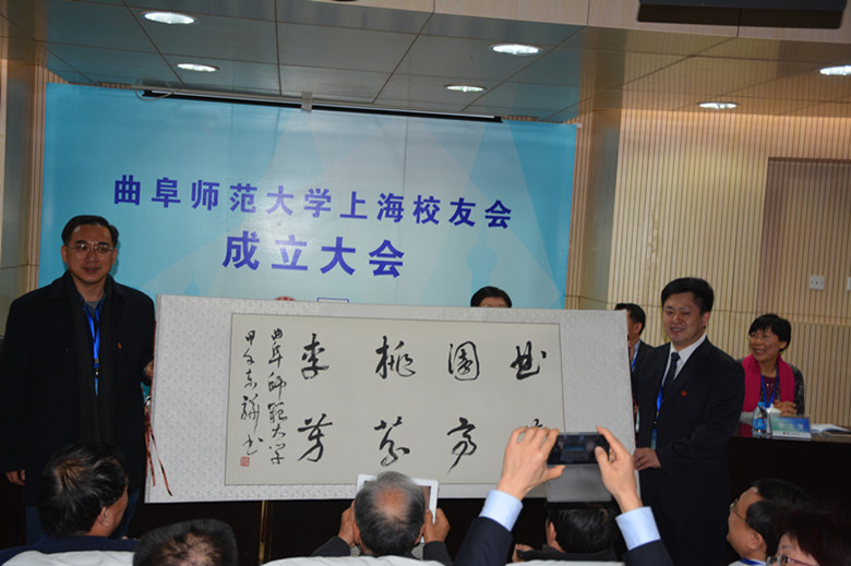 我校校长戚万学为上海校友会揭牌,向校友会赠送了由副校长马东骅题写的“曲园桃李 华亭芬芳”书法作品。戚万学代表母校近四万名师生向上海校友会的成立表示热烈祝贺,向广大上海校友致以亲切问候和美好祝福,并盛赞广大上海校友秉承母校优良传统,以才智耕耘,用心血浇灌,在各行业、各领域取得的杰出成就。