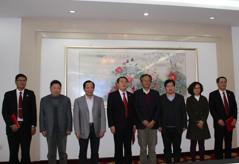会上,杨冰向岚山区人民法院胡建、王少山、王志远三位同志颁发了兼职教授聘书。法学院院长袁兆春与岚山区法院胡建院长签署了共建协议。杨冰和胡建共同为法学院教学科研基地揭牌。
