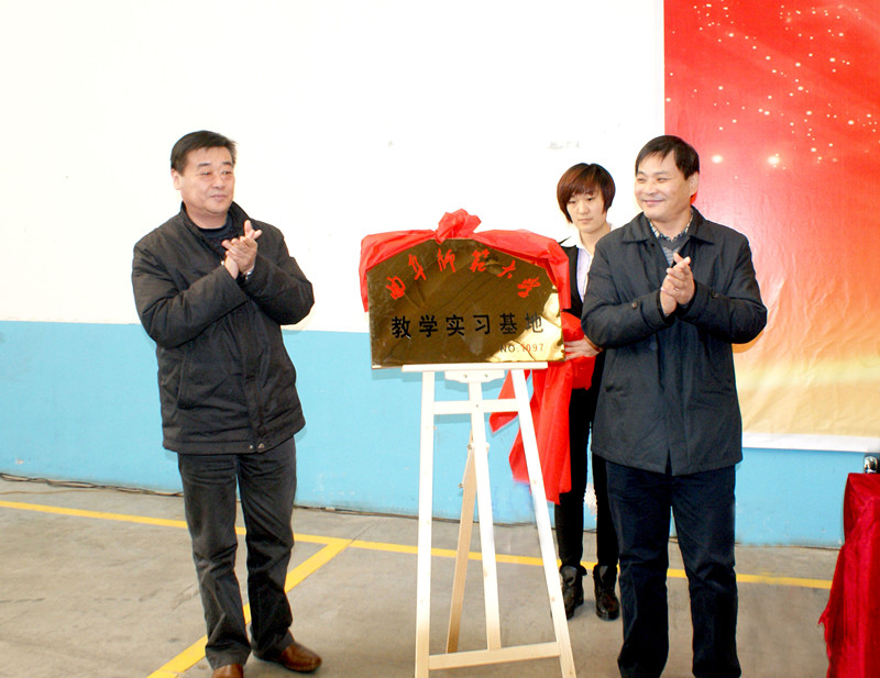 工学院院长武玉强和阳光概念包装有限公司总经理张洪明签订了校企合作协议,郭辰夫与王军绪共同为“乐鱼(中国)教学实习基地”揭牌。
