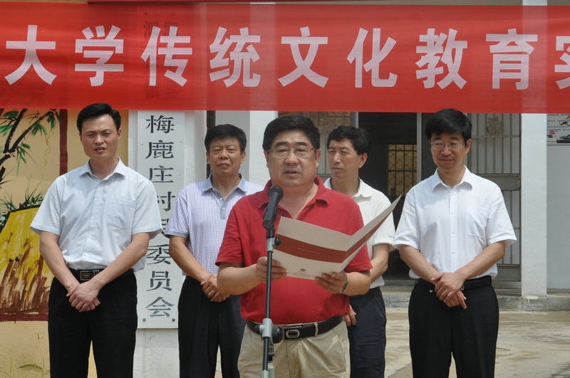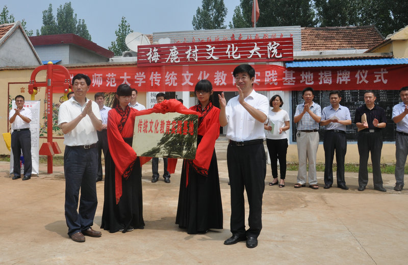 在梅鹿庄村,荆兆勋、刘新生、孙文亮出席了乐鱼(中国)传统文化教育实践基地揭牌暨儒家文化齐鲁行启动仪式。荆兆勋与泗水县委书记范宇新共同为传统文化教育实践基地揭牌。孙文亮发表讲话,向实践基地的建成表示祝贺。他指出,传统文化教育实践基地的建成,是曲师大与地方合作的创举,以传统文化为桥梁,曲师大将充分发挥自身特色和优势服务地方发展,今后将陆续开展明德故事讲堂、国学诵读班等活动,为梅鹿庄村向社会主义新农村迈进贡献一份力量。活动前,孙文亮代表学校走访看望了梅路庄村老党员代表,送去了我校师生的问候和祝福。揭牌仪式结束后,明德故事会第一讲开讲,由历史文化学院王曰美教授主讲。