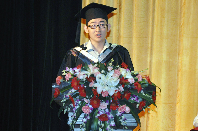 校长傅永聚在典礼上讲话,代表学校对2014届毕业生在校期间所取得的成绩予以充分肯定,对大家圆满完成学业,顺利毕业表示祝贺。他告诫大家在走上社会之后,要坚持勤学、修德、明辨、笃实的作风,在各自的岗位上创造曲园人新的辉煌。傅永聚深情地说,母校是写满记忆的地方,是值得每位同学铭记的人生港湾,希望毕业生们常回家看看。