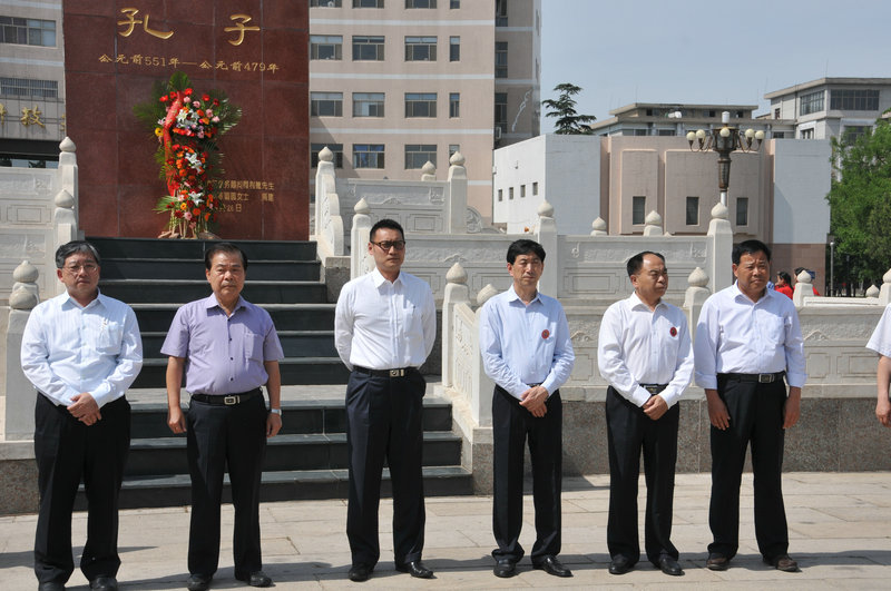揭牌仪式前,中华大成至圣先师孔子协会会长孔垂长先生在孔子文化广场向孔子像敬献了花篮。