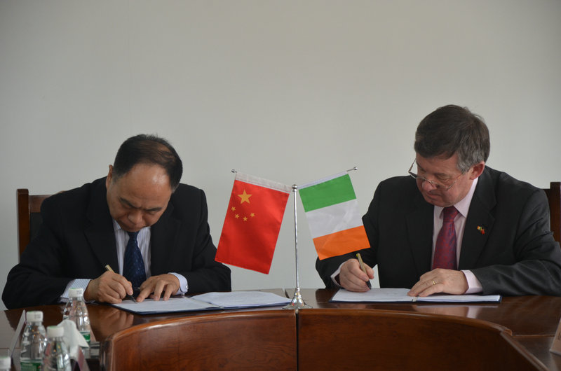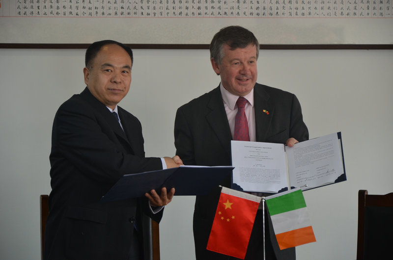 傅永聚与MichaelMurphy分别代表两校,共同签署了《乐鱼(中国)与爱尔兰科克大学学生联合培养协议》。