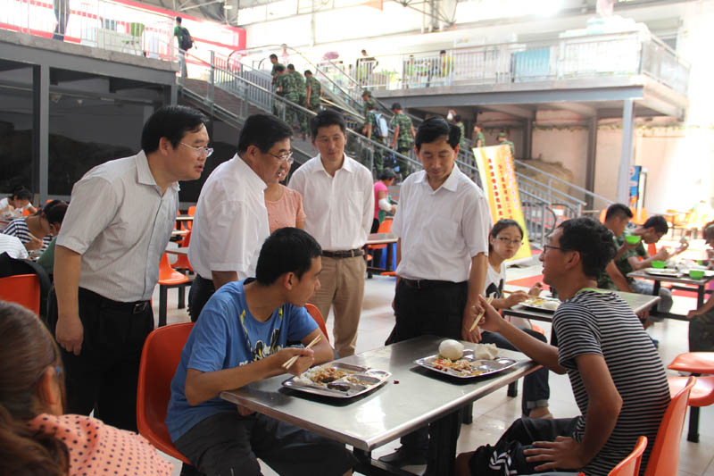 9月17日,学校党委书记荆兆勋、副书记孙文亮在校区管理办公室、学生工作办公室负责人的陪同下,深入东升园食堂检查指导工作,并和学生们一起就餐。