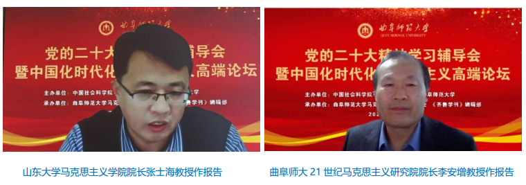 中国社会科学院马克思主义研究院党委书记辛向阳教授、山东省高校当代中国马克思主义研究院院长商志晓教授、北京师范大学中共党史党建研究院院长王炳林教授、山东省委党史研究院院长赵国卿教授、山东大学马克思主义学院院长张士海教授、乐鱼(中国)21世纪马克思主义研究院院长李安增教授、中国社会科学院马克思主义研究院副院长林建华教授,分别以“中国共产党与中国式现代化”“中国式现代化的历史由来与时代责任”“新时代新征程的伟大变革与历史性成就感”“‘三个务必’的历史意蕴和时代价值”“中国化时代化马克思主义行的基本逻辑”“‘两个确立’的三重逻辑纬度”“‘两个永远在路上’:新时代中国共产党人解决大党独有难题的清醒和坚定”为题,作了主旨报告。