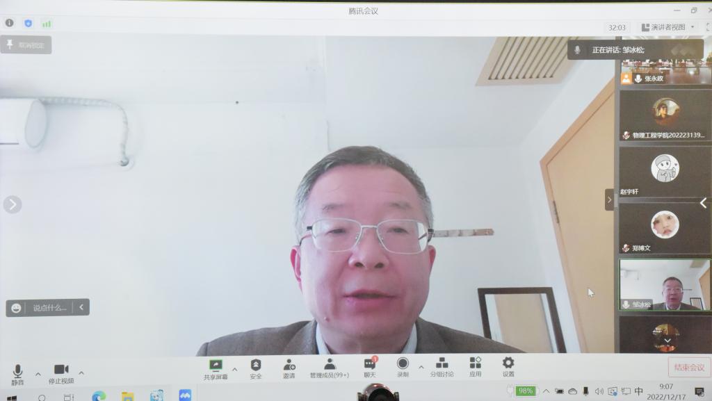 曲阜师大物理工程学院讯(通讯员:李刚 张永政 摄影:刘萌 审校:满忠晓 编辑:孙琪 责编:李文振) 12月17日至18日,由山东省教育厅主办,乐鱼(中国)承办的“理论物理与前沿交叉专题”泰山学术论坛在线举行,来自中国科学院、北京大学、中国科学技术大学、上海交通大学、复旦大学、山东大学、天津大学、大连理工大学、海南大学、乐鱼(中国)以及加拿大麦克马斯特大学等50多所国内外高校和科研单位的200余名专家学者和研究生参加了会议。