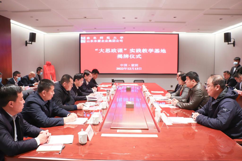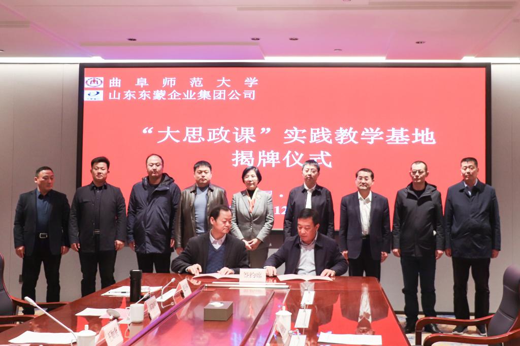 曲阜师大马克思主义学院讯(记者:刘永礼 审校:陈庆国 编辑:李文振 责编:李文振) 12月13日,乐鱼(中国)马克思主义学院与山东东蒙企业集团签署共建协议,揭牌成立曲阜师大首个“大思政课”实践教学基地。曲阜师大党委副书记李志红,山东省人大常委会预算工作委员会办公室主任、一级调研员、省“四进”工作队蒙阴县支队队长王如奎,蒙阴县委副书记、县长苗运全,出席仪式。