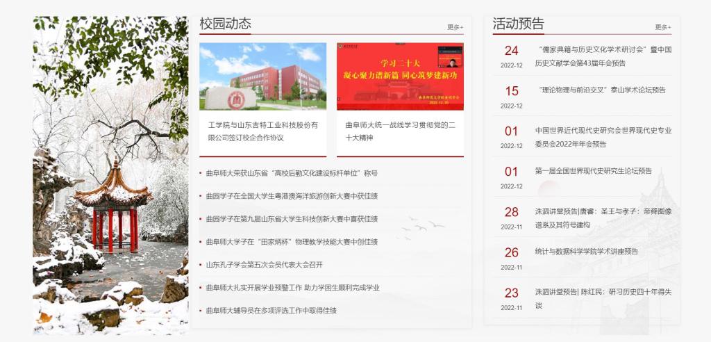 曲阜师大乐鱼官方网页版讯 为落实学校第九次党代会部署,进一步加强对外形象宣传,乐鱼官方网页版在广泛调研基础上对学校官方网站进行了整合、重组与更新,经过一段时间的调试,2023年1月1日,新年第一天,全新改版的网站正式上线运行。