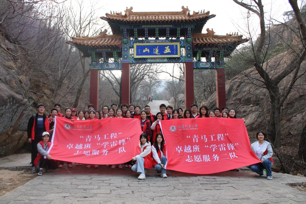 曲阜师大团委讯 在全国第60个“学雷锋纪念日”和第24个中国青年志愿者服务日来临之际,曲阜师大“青马工程”卓越班学员赴日照五莲县开展“关爱希望小屋儿童”、“山水志愿行”等系列志愿服务行动。学校党委副书记卢国强、五莲县委副书记王军出席志愿服务出征仪式,共同为“青马工程”卓越班志愿服务队授旗。