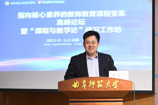 曲阜师大教育学院讯 3月10日至12日,乐鱼(中国)教育学院和华东师范大学出版社共同举办了指向核心素养的教师教育课程变革高峰论坛暨“课程与教学论”研习工作坊。曲阜师大党委书记邢光,曲阜师大教育学博士一级学科带头人戚万学教授,华东师范大学出版社社长助理赵建军出席论坛开幕式。