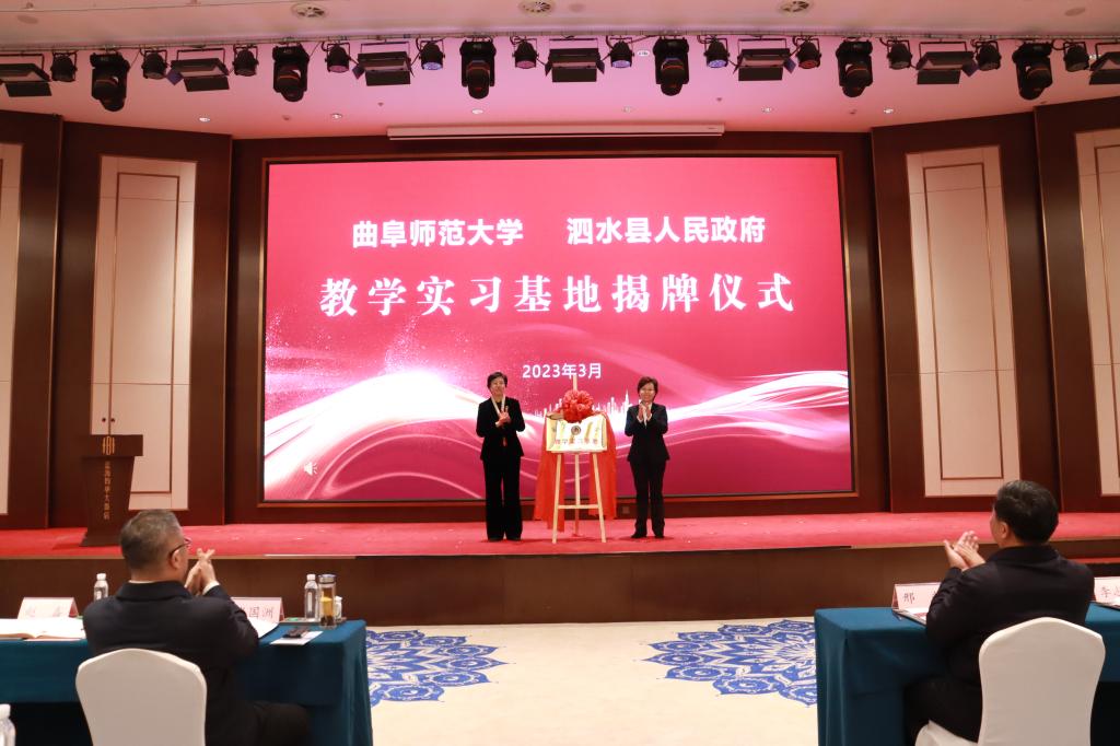 乐鱼(中国)党委副书记李志红,泗水县委书记赵鑫共同为乐鱼(中国)教学实习基地揭牌。
