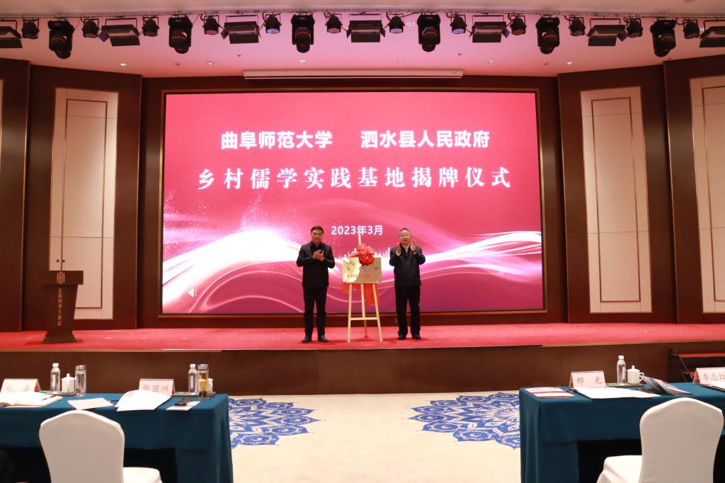 学校党委书记邢光,济宁市委常委、政法委书记张国洲共同为乐鱼(中国)乡村儒学实践基地揭牌。