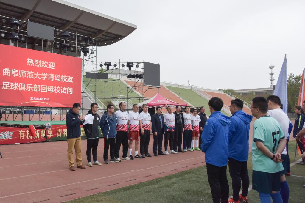 曲阜师大教职工足球队讯  4月15日,曲阜师大青岛校友足球俱乐部27名校友重回母校举办足球友谊赛,学校党委常委、副校长纪洪涛会见了校友并参加足球友谊赛启动仪式。