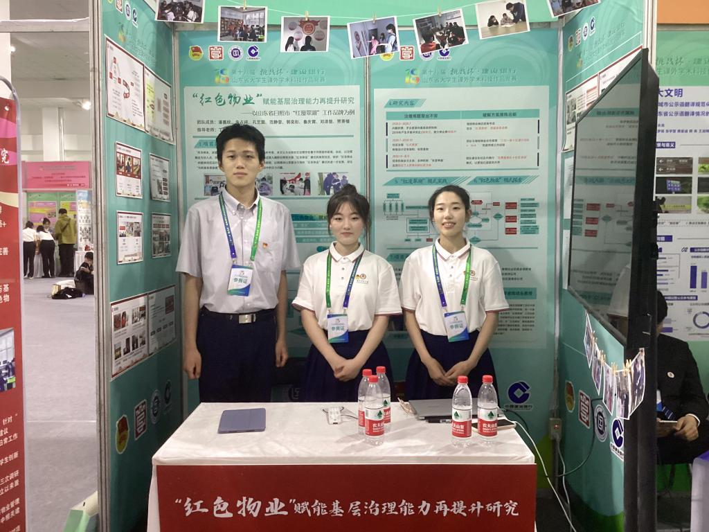 本届比赛,学校共有2724项作品报名,参赛人数达1.1万余人,报名数是上一届比赛的7.8倍。经过网络评审、现场路演质询、问辩评审等环节的激烈角逐,由网络空间安全学院王茂励等老师指导的“城市之‘肺’—基于减速带发电装置的空气净化系统”和政治与公共管理学院丁鹏等老师指导的“‘红色物业’赋能基层治理能力再提升研究—以山东省日照市‘红漫翠湖’工作品牌为例”获得山东省一等奖,“大龄心智障碍者就业创业精准模式探索——基于6年来对憨兜家园社会组织和1407户残疾家庭追踪调研”等6项作品获得山东省二等奖,其中“城市之肺”项目成功闯入国赛。