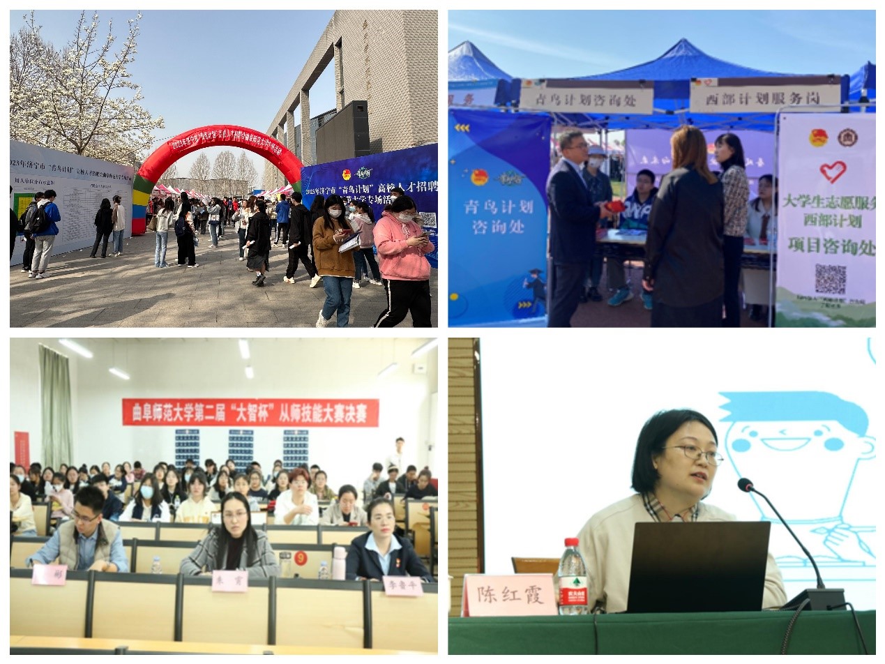 发布《关于开展“百万大学生进社区”社会实践的工作方案》,实行学院与镇街结对、团支部与村、社区结对,目前全校已有30%的团支部完成结对。举办与时庄街道新苑社区共建大学生社会实践基地揭牌仪式,组织青马班学员参观乡村振兴样板工程和党建成果。组织学生积极参与山东省大学生游泳锦标赛和“央企省企济宁行”活动、瑞石杯·2023 曲阜圣城马拉松赛志愿服务活动,邀请山东省志愿者行动指导中心、大学生志愿服务西部计划山东省项目负责人魏华作专题讲座,举办西部计划志愿者分享会3场,引导青年学子到西部去、到基层去,到祖国和人民最需要的地方去,为祖国发展建设贡献曲园力量。