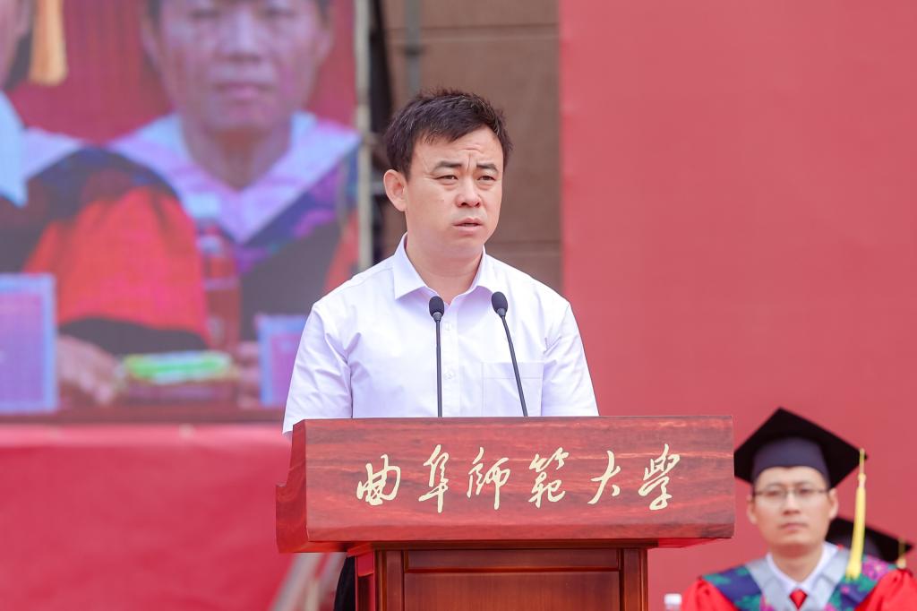 “我做记者很多年,几乎每到一个地方,总能碰到曲师大的校友,在各种职业、各个岗位上熠熠发光。”曲阜师大2001届本科毕业生、2004届硕士毕业生,山东广播电视台闪电运营中心主任刘骏校友在典礼上说,曲阜师大给予的滋养、锤炼和底气,必将让同学们受益终生。