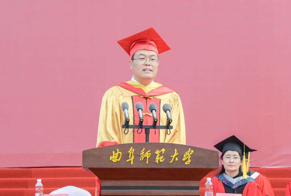 “那些曾经的困境,会使你们更具不畏征途坎坷的勇气和毅力。”张洪海说,2023届毕业学子的青春历程因为“疫情大考”而显得更为厚重。疫情虽使同学们的求学之路历尽艰辛,但丝毫没有影响大家励志进步、追求卓越。在2023届毕业生中,有7438人次获得各类奖、助学金;218人次获得国家级荣誉;12910人次获得省级、校级荣誉;一批学霸宿舍集体上岸,在求学之路上继续深造;一批师范学子走上三尺讲台,擦亮孔子家乡大学的师范招牌;一批最美同学投身基层岗位,让青春之花绽放在祖国最需要的地方。