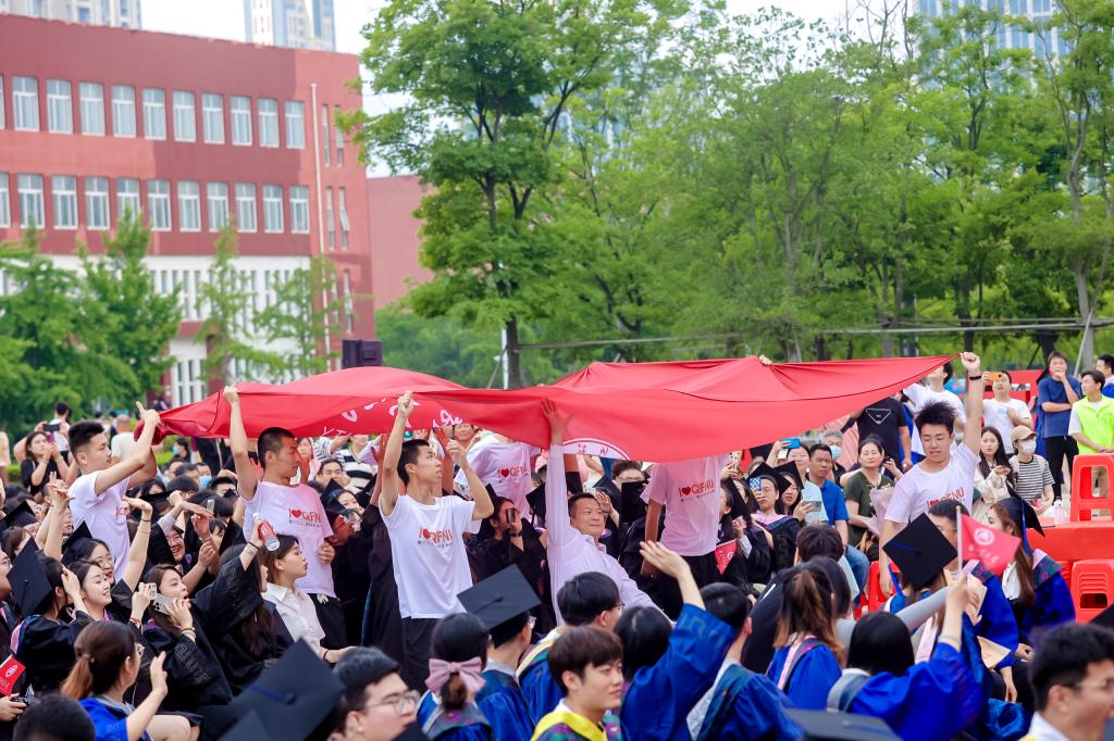 张洪海指出,同学们四年来赓续“学而不厌、诲人不倦”的校训精神,践行“勤奋朴实、团结进取”的扎实学风,经历各种考验,用努力和拼搏为自己的成长交上了一份满意的答卷。大家在时代洪流中定位了关键的奋斗坐标,定义了向阳而生、卓尔不群的魅力青春。