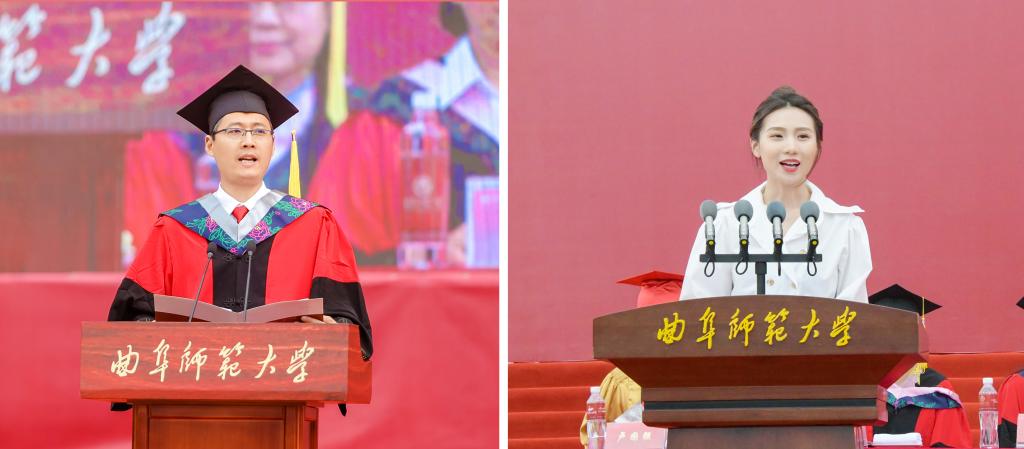 “纵然有着万般不舍,但我们更期待看到,你们于今朝扬帆起航,勇敢无畏地奔向属于自己的远方。”曲阜师大2019级辅导员代表刘润欣老师在典礼上表示,无论同学们走多远,曲园情都将伴大家万水千山。