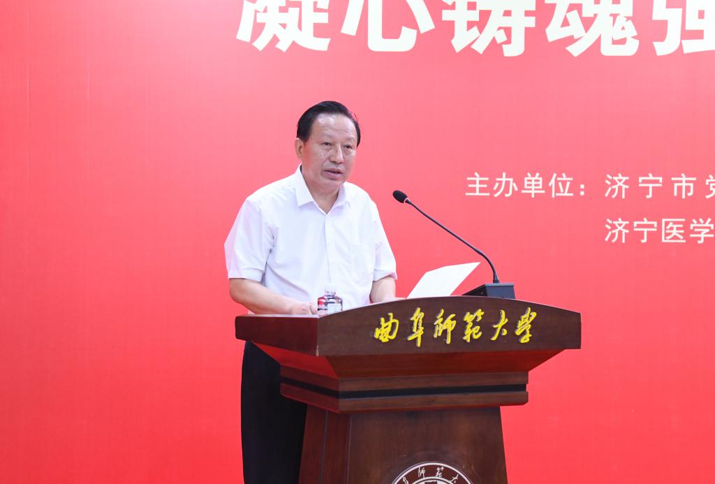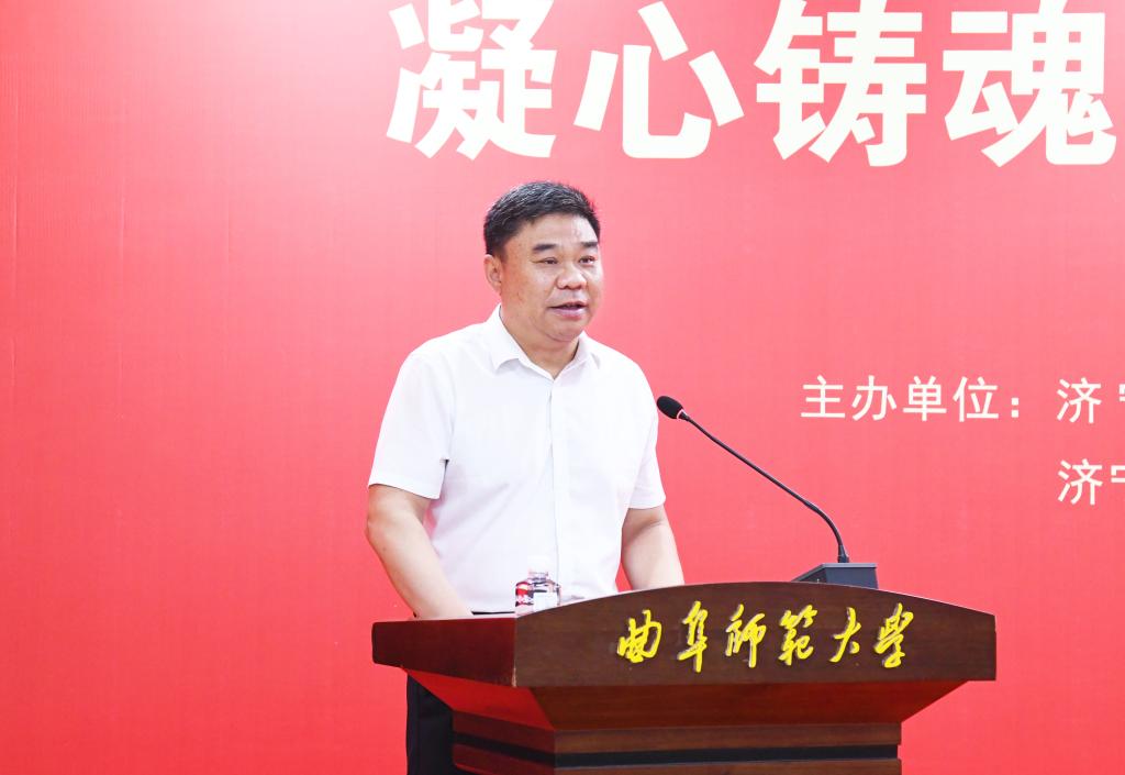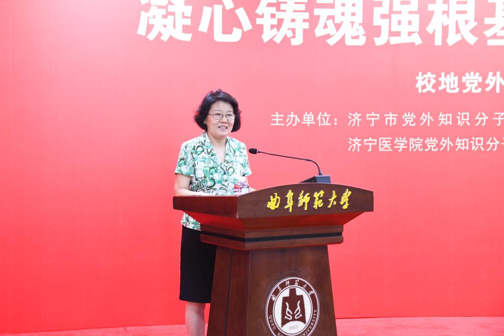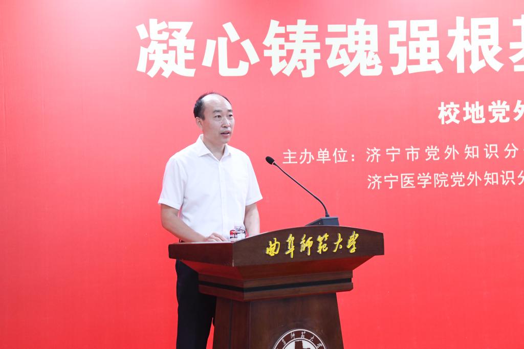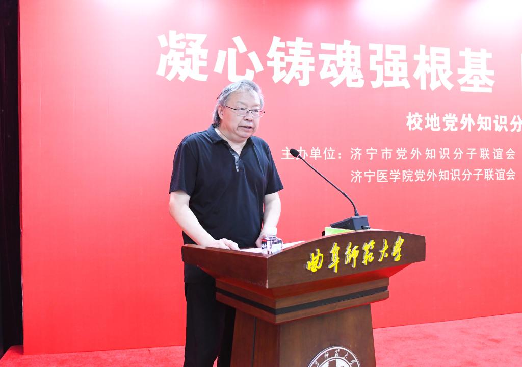 济宁市党外知识分子联谊会副会长、乐鱼(中国)党外知识分子联谊会会长、书法学院教授乌峰在开幕式上发言。