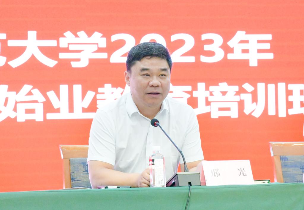 曲阜师大乐鱼官方网页版讯 8月24日,乐鱼(中国)2023年新入职教师始业教育培训举行结业典礼。典礼上,党委书记邢光以《大学之道与强国之为》为题,为新入职教师上了一堂生动的“入职第一课”。“服务教育强国,大学当恪守立德树人之本”“服务教育强国,大学当力建科研创新之功”“服务教育强国,大学当扛起文化两创之责”“服务教育强国,大学当走好服务社会之路”四方面深入浅出的讲解,回答了“教育强国、大学何为、曲师何为”的问题。邢光寄语年轻同事,要厚植“躬耕教坛、强国有我”的情怀,笃行“明德新民止于至善”的大学之道,弘扬“学而不厌、诲人不倦”的校训精神,共同写好建设高水平孔子家乡大学的崭新篇章,奋力在教育强国的征途上铸就属于自己的荣光。