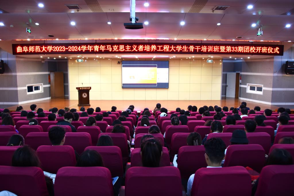 曲阜师大团委讯 11月8日下午,曲阜师大举行2023—2024学年青年马克思主义者培养工程大学生骨干培训班暨第33期团校开班仪式。学校党委副书记卢国强出席开班仪式,为2023—2024学年“青马工程”培训班授旗并讲授青马第一课。