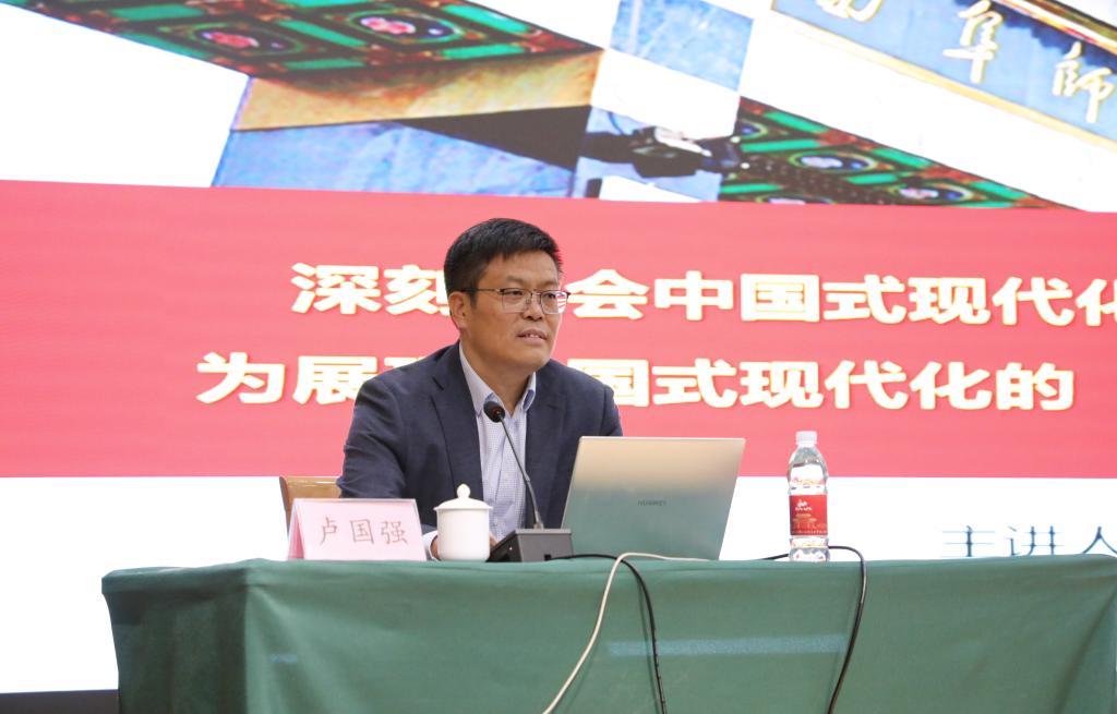 卢国强以《深刻领会中国式现代化的科学内涵和实践要求,为展现中国式现代化的“曲师作为”贡献青春力量》为题,结合同学们的学习和生活实际,给同学们讲了一堂生动的思政课。卢国强从历史逻辑、理论逻辑、实践逻辑三个维度,从“为什么”“是什么”“干什么”三个角度,深刻阐释了中国式现代化这一理论的丰富内涵。卢国强指出,当代青年要全面学习、全面把握、全面落实中国式现代化的科学内涵和实践要求,坚定不移听党话、跟党走。