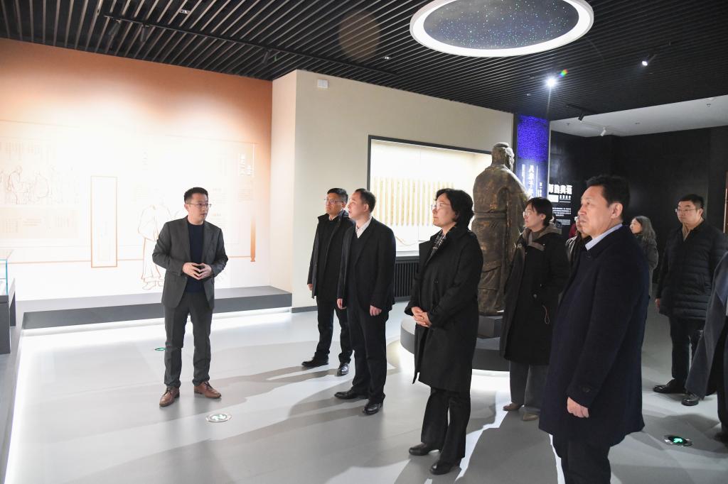 座谈结束后,魏艳菊、辛杰一行参观了教师博物馆、学校实训中心。魏艳菊、张洪海共同为山东青年政治学院师德研修基地揭牌。
