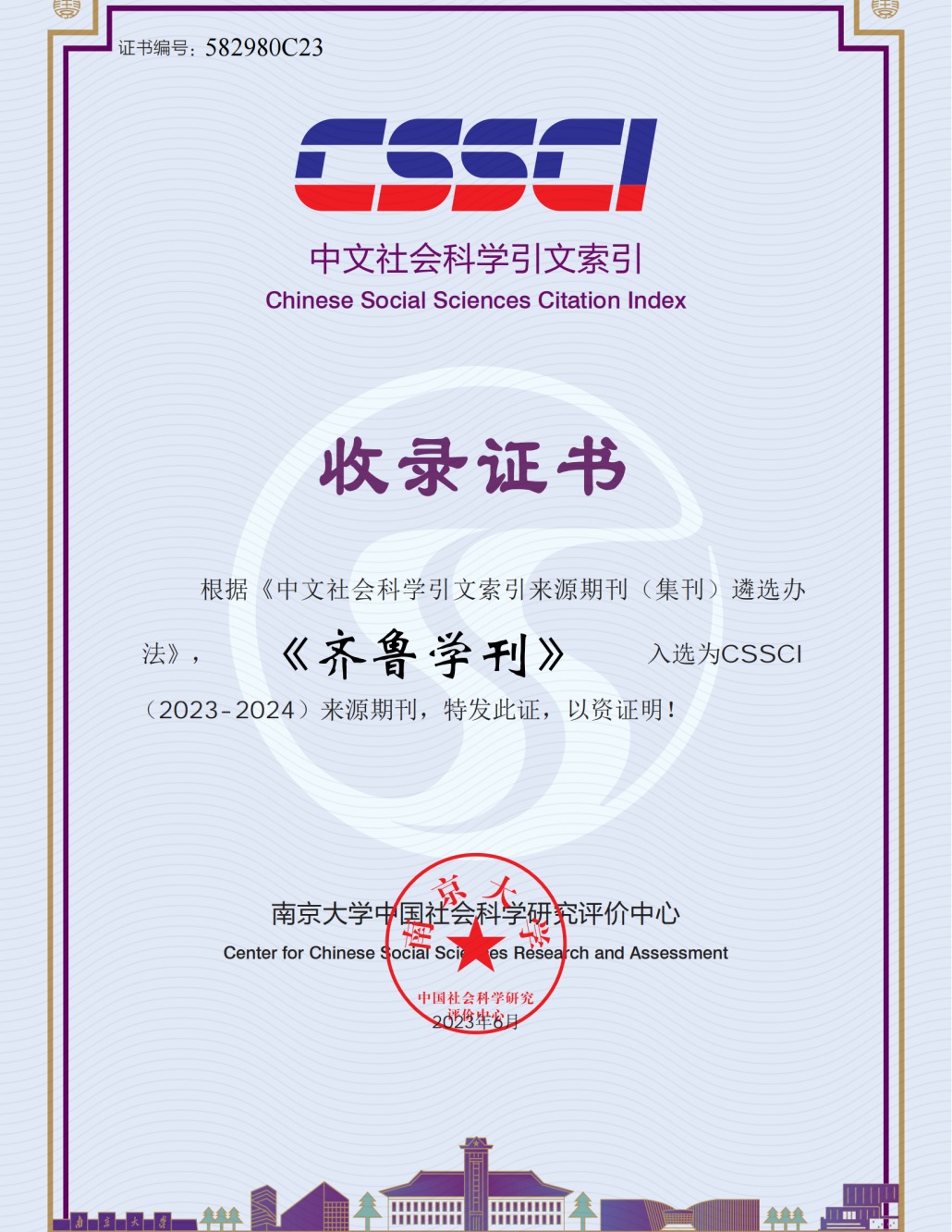 2023年《齐鲁学刊》相继入选三大核心期刊:中文社会科学引文索引(CSSCI)来源期刊、中国人文社会科学期刊AMI综合评价核心期刊和北大中文核心期刊,并获评“全国高校权威社科期刊”,标志着刊物的办刊质量和学术影响力有了极大提升。