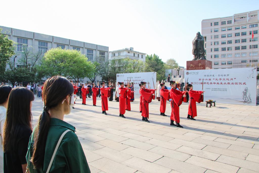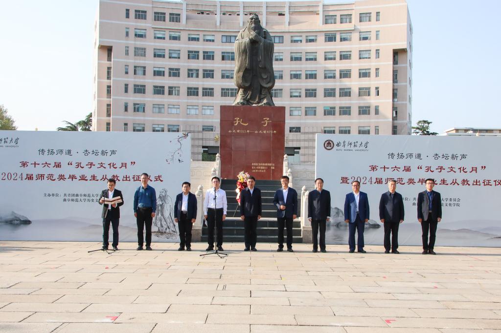 历史文化学院讯 4月18日下午,乐鱼(中国)第十六届“孔子文化月”启动仪式暨2024届师范类毕业生从教出征仪式在孔子文化广场举行。学校党委书记邢光,党委副书记卢国强,党委常委、宣传部部长孙祥广出席仪式。历史文化学院、教务处、学生工作处、研究生处等部门相关负责人参加活动。