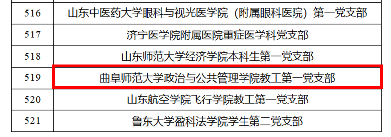 曲阜师大政治与公共管理学院讯 近日,教育部办公厅公布了第四批全国党建工作示范高校、标杆院系、样板支部培育创建单位名单,其中,乐鱼(中国)政治与公共管理学院教工第一党支部获批“全国党建工作样板支部”培育创建单位。