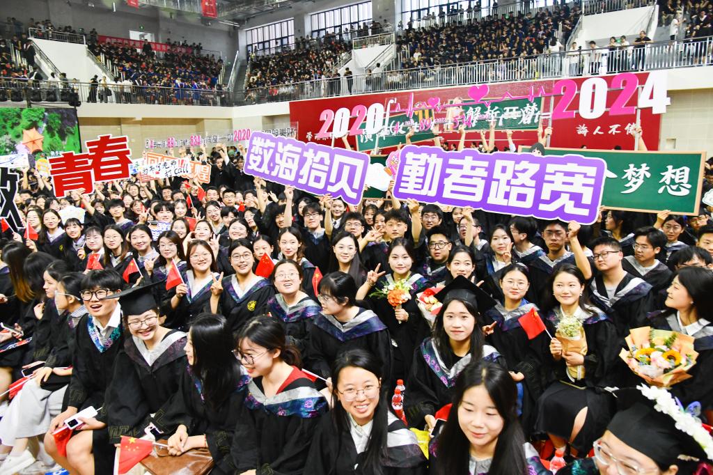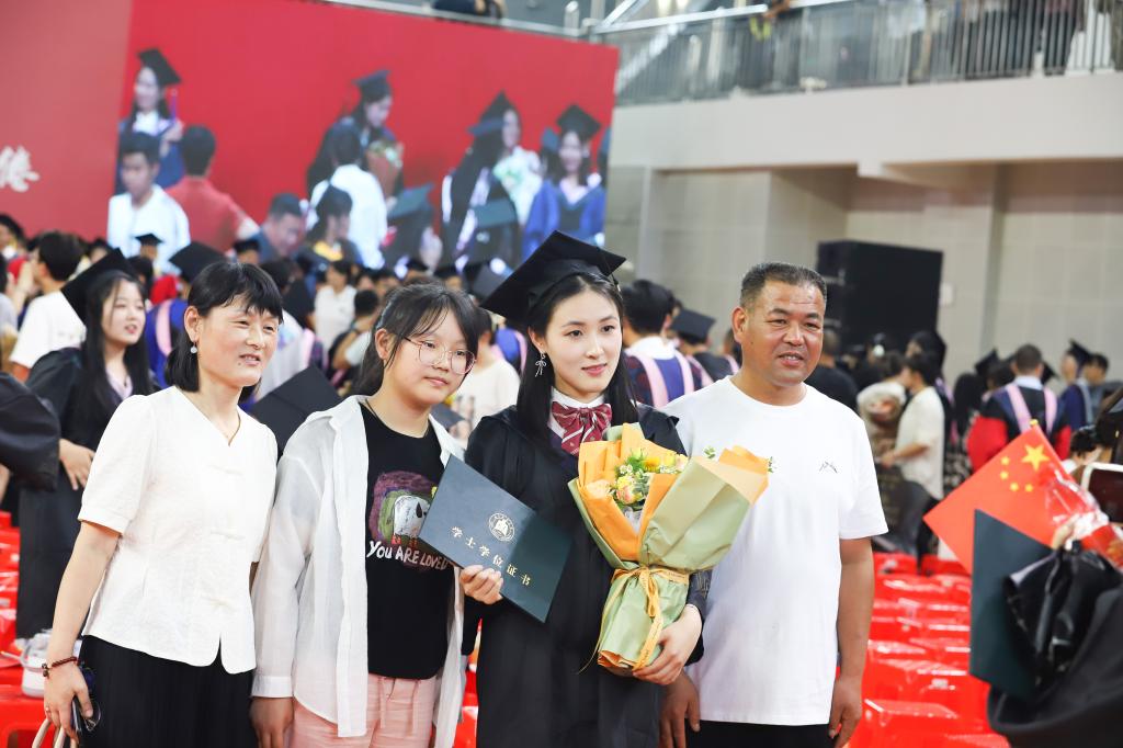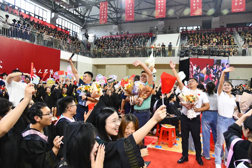 “看着你们一步一步褪去青涩,成长为挺膺担当的时代青年,我和你们的父母一样,充满自豪、倍感欣慰!”张洪海在典礼上说,回首同学们的大学之路,大家遇见曲园,在儒风海韵中留下了乐学笃行的最美青春;不负曲园,在逐梦前行中见证了学校高质量发展;再见曲园,希望大家毕业离校之时一同带上曲园的校训精神、师道传统和曲园学子共有的心怀家国、艰苦奋斗、自强不息、敢为人先的精神特质,心有繁星、追光而行,开拓人生、奉献社会,奏响无愧于时代的青春之歌。