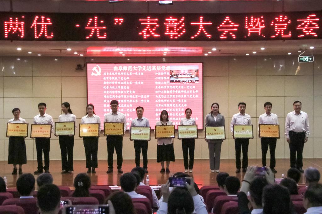 会上,邢光、胡凡刚分别在两校区为“光荣在党50年”老党员代表颁发纪念章。党委班子成员向受到表彰的先进个人和集体颁发了证书和奖牌。教育学院教授徐瑞,地理与旅游学院教授张学波,数学科学学院教工第一党支部书记魏云亮,翻译学院组织员、本科生第一党支部书记孙杰琼代表获奖先进个人和组织分别发言。