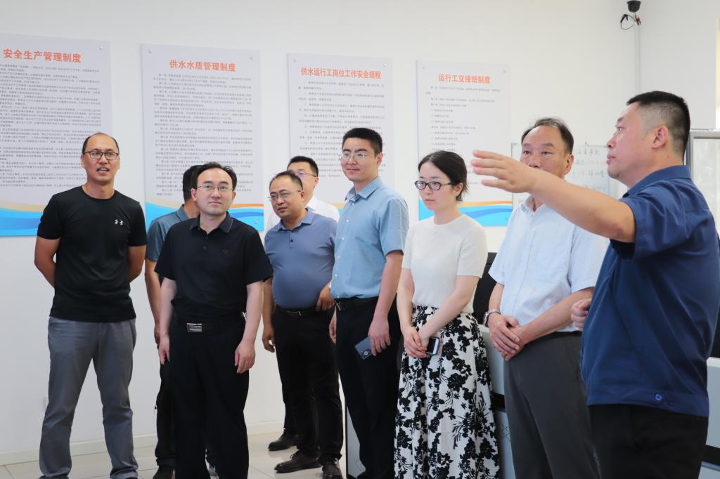 调研组一行先后到奎山水厂的取水泵房、清水池和供水泵房进行参观,了解了水厂的生产流程和管理制度,随后参观了奎山水厂中控室的远程控制中心和日照水务集团供水有限公司的数据分析决策系统平台,了解了智慧水务建设情况和水务数字化转型工作。