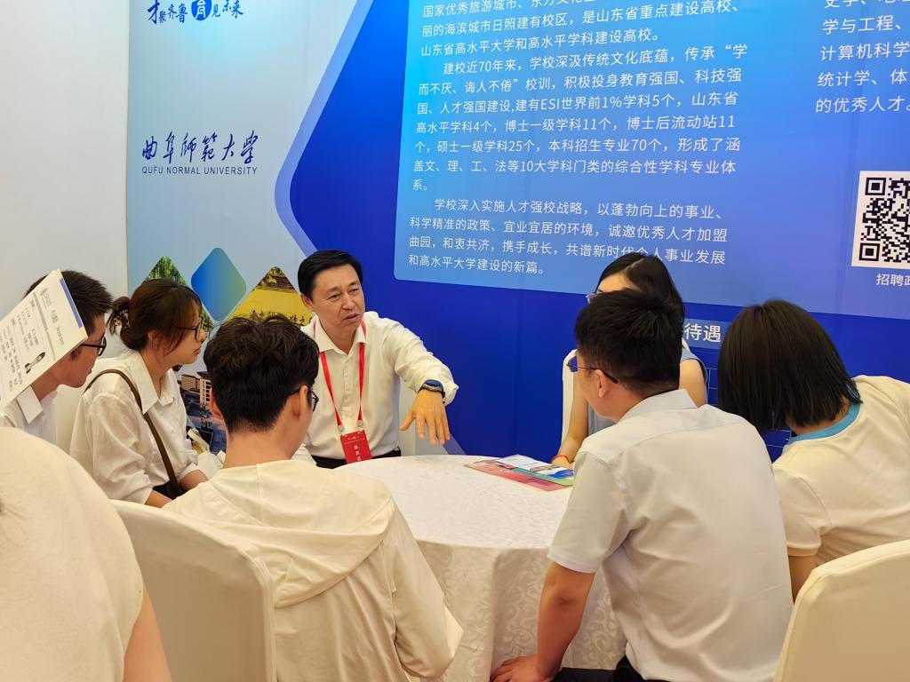 在“人才与校长”座谈交流环节,张洪海与来自上海交通大学、复旦大学、同济大学、浙江大学等高校的青年博士展开了热烈而充分的座谈交流,热情回答了青年人才关于招聘待遇、工作条件、生活环境、发展前景等方面的问题,鼓励青年人才来曲师安家创业,施展才华实现抱负。多名青年博士表示,通过本次活动更全面地了解了孔子家乡大家的办学实力与邀约诚意,期待能有机会加入乐鱼(中国),在乐鱼(中国)实现新的成长。