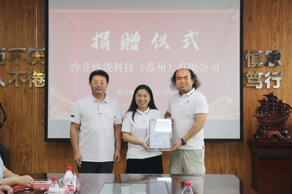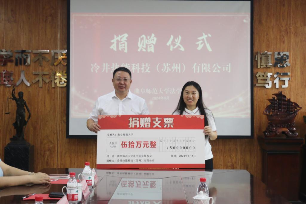 法学院 国内合作处讯 8月6日上午,乐鱼(中国)法学院举办校友捐赠仪式,校友企业冷井热能科技(苏州)有限公司向曲阜师大孔子教育基金会捐赠50万元,用于支持学校法学教育事业。曲阜师大1999级经济法政学院校友、冷井热能科技(苏州)有限公司董事长贺妮、总经理杨家,乐鱼(中国)党委常委、副校长、乐鱼(中国)孔子教育基金会理事长纪洪涛出席签约仪式。