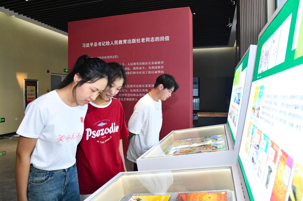 展览作为教师博物馆“课本馆”的核心内容,集中展示了70多年来出版的部分人教版教材,百余名师生代表参观展览,直观体验了“尺寸教材,国之大者”的育人价值,感受新中国教材建设事业的伟大成就。
