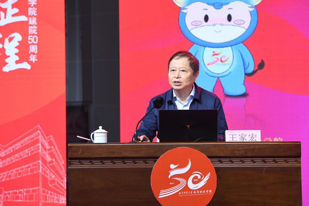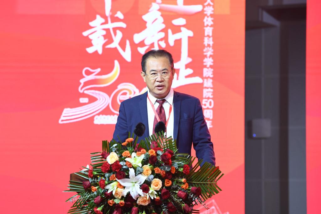 张洪海介绍了乐鱼(中国)和曲师体育的奋进历程和办学成绩。他表示,50年来,体育科学学院发展成为本硕博、博士后培养层次齐全,建成并保持了山东体育学界十几个“唯一”,以“争第一、争唯一”的姿态,整体建设水平保持省内领先、走在全国前列,为体育强省、体育强国建设作出了卓越贡献;50年来,体育科学学院累计为社会培养输送一万五千余名优秀毕业生,其中涌现出各行各业的优秀人才,他们带着曲园人心怀家国、艰苦奋斗、自强不息、敢为人先的精神特质,在不同的领域书写人生的辉煌,共同为学校增添了荣誉和光彩。