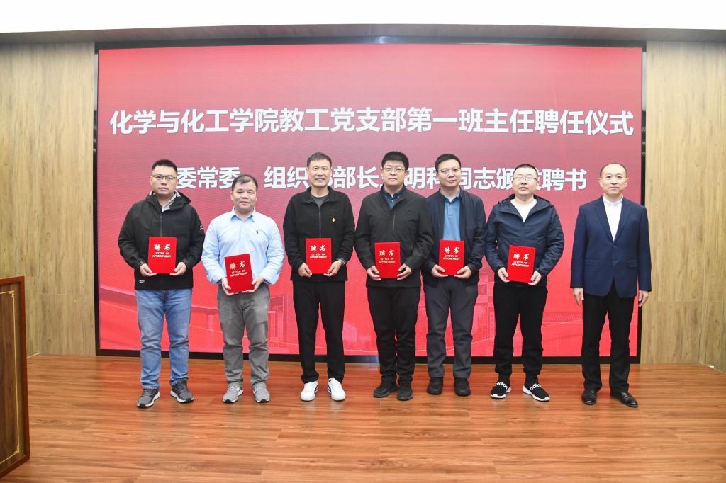 为了促进科研合作、青年教师培优和优秀学生培养,化学与化工学院在活动中聘请国家重点实验室的七位党员同志为“第一班主任”,王明科为七位同志颁发聘书。