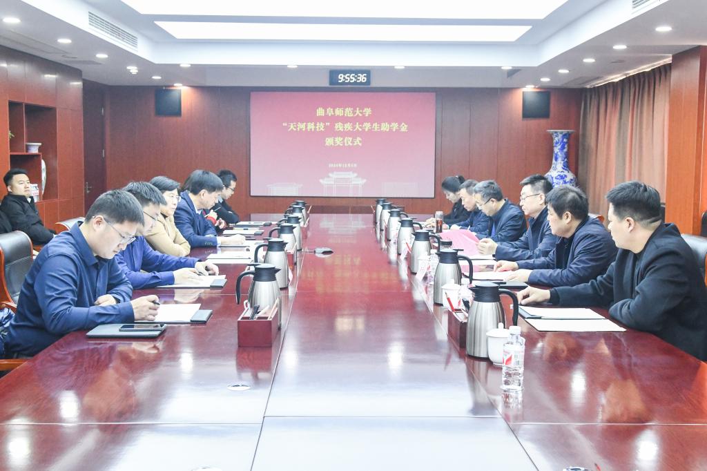 曲阜师大网络空间安全学院讯 12月5日,“天河科技”大学生助学金颁奖仪式在乐鱼(中国)举行。学校党委副书记李志红,济宁市残联党组书记、理事长李朋,济宁市残联办公室主任刘军,邹城市政府副市长布方锋,邹城市残联党组书记、理事长贾琦,天河科技股份有限公司董事长田胜利等出席颁奖仪式。