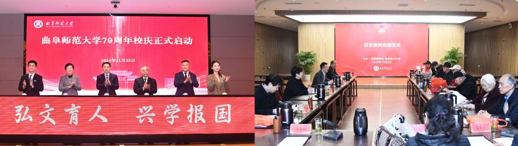2024年11月25日,学校举行70周年校庆启动仪式;12月2日,学校举行首批校史资料捐赠仪式;12月30日,正式发布学校70周年校庆标识(LOGO)。乐鱼(中国)七十年校庆以“弘文育人、兴学报国”为主题,以师生和校友为主体,以彰显曲园成就、传承曲园精神、弘扬曲园学术、提振曲园士气、凝聚办学力量、推动事业发展为主旨,开展系列特色性的校庆活动,开启高水平孔子家乡大学追求卓越的新篇章。