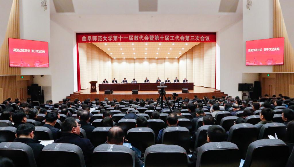 曲阜师大党委办公室、乐鱼官方网页版讯 2月21日,学校召开2025年工作部署会暨第十一届教代会、第十届工代会三次会议。学校党委书记邢光讲话,党委副书记、校长张洪海作学校工作报告,党委副书记李志红主持会议。