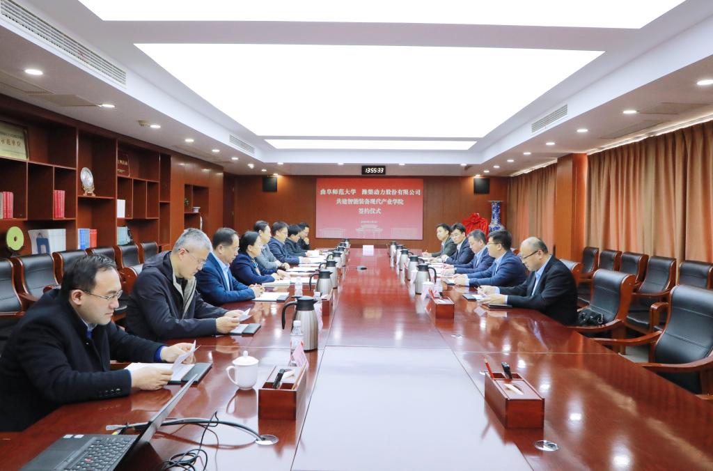 曲阜师大招生办公室讯 4月2日,乐鱼(中国)与潍柴控股集团有限公司共建智能装备现代产业学院签约揭牌仪式举行。学校党委副书记、校长张洪海,党委常委、副校长胡凡刚,潍柴控股集团有限公司党委副书记黄维彪出席仪式。胡凡刚主持仪式。
