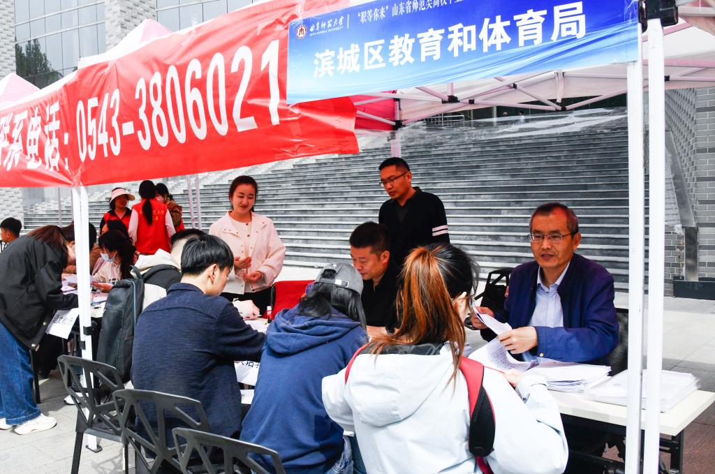 招聘会由山东省教育厅主办、乐鱼(中国)承办。招聘会现场设置了“二维码墙”为求职应聘提供便捷,应聘学生一键扫码即可了解相应招聘信息并投递简历;设置了直播带岗环节,毕业生辅导员代表走进直播间推介毕业生,用人单位代表直播带岗,取得了多方联动促就业的良好效果。针对学校师范办学特色,招聘活动还设置了教育行业招聘专场,其中滨州市提供教师岗位300余个,吸引2000多名师范毕业生报名应聘。学校为本次招聘会组建了300余名师生的志愿者团队,以细致周到的服务、科学规范的流程为本次招聘会提供了坚实保障;开通人才招聘服务绿色通道,确保了招聘会充分发挥好供需对接、人岗匹配的作用。