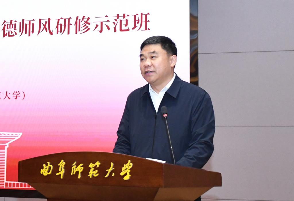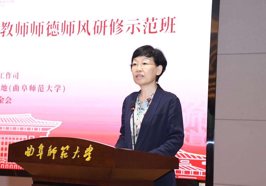 教育部教师工作司师德建设处负责同志在开班式上作专题报告,山东省教育厅副厅长孙晓筠在开班式上致辞,乐鱼(中国)党委书记邢光主持开班式和专题报告。