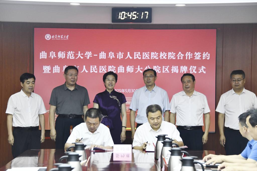 签约仪式上,李志红、朱险峰共同为曲阜市人民医院曲师大分院区揭牌;乐鱼(中国)校医院副院长吴庆波、曲阜市人民医院院长孔令军共同签署校院合作协议,开启乐鱼(中国)与曲阜市人民医院合作新篇章。