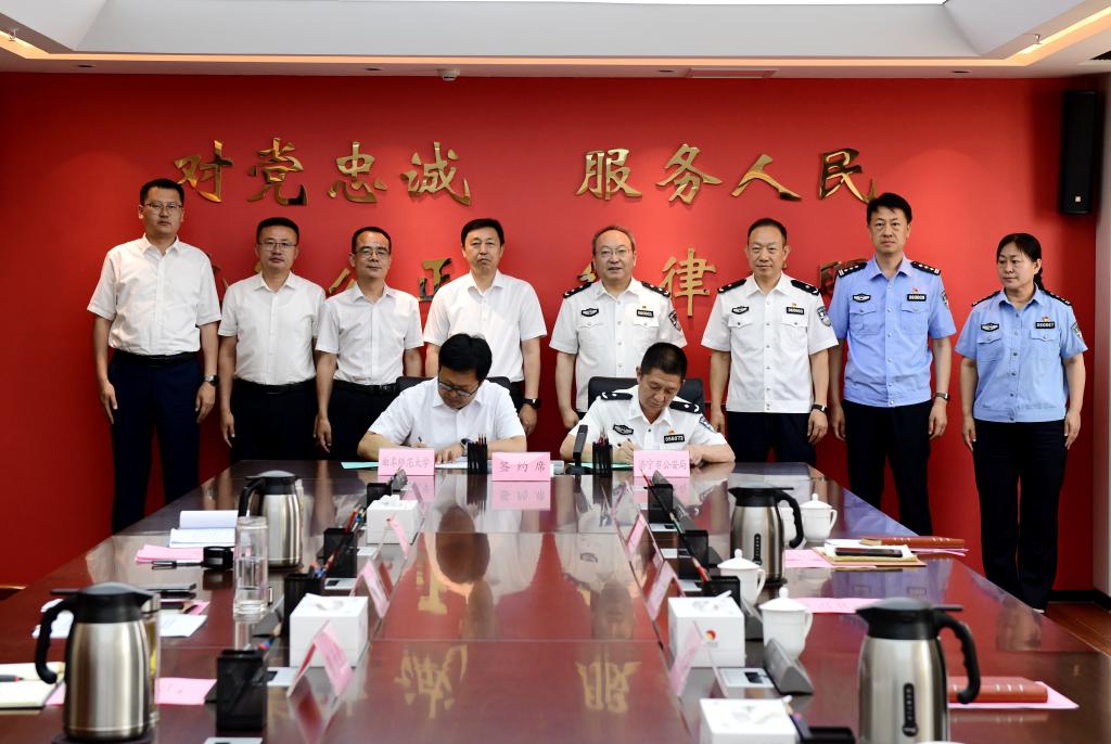 曲阜师大科学技术处处长杨月伟与济宁市公安局森林警察支队支队长张培福代表双方签署合作协议。张培福和曲阜师大生命科学学院党委书记李志广分别就双方共建的前期工作和后期合作展望作了交流发言。曲阜师大保卫处处长胡一杰,济宁市公安局指挥中心主任王燕军、组教处处长孙雪玲及森警支队负责同志参加活动。