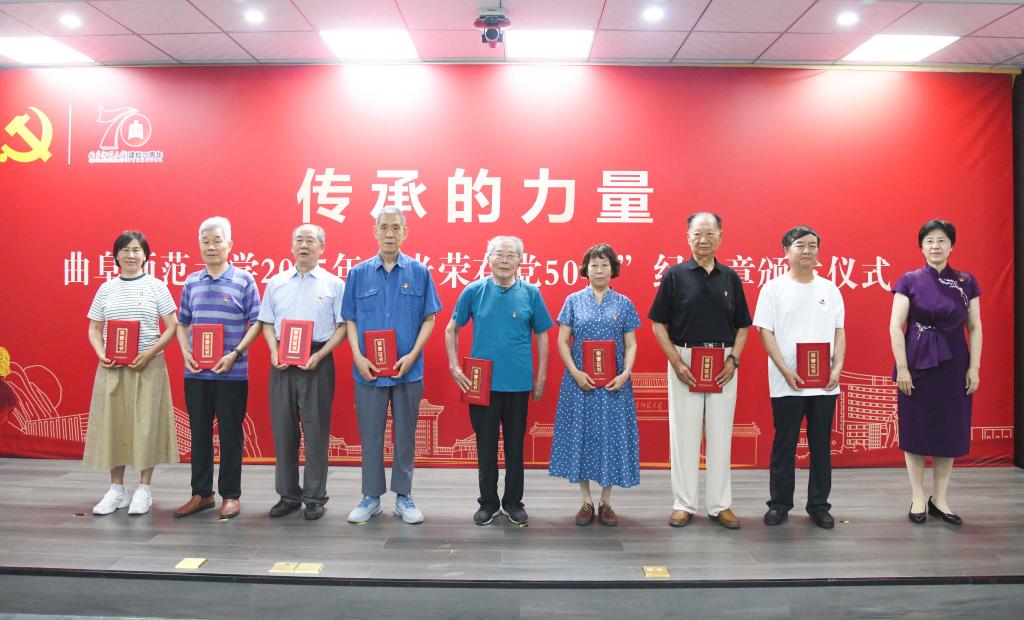 离退休工作处讯 6月30日,乐鱼(中国)隆重举行“传承的力量·光荣在党50年”纪念章颁发仪式。学校党委书记邢光,党委副书记李志红,荣获纪念章的老党员代表,离退休党员代表,学生党员代表近100人参加活动。党委常委、组织部长王明科主持仪式。