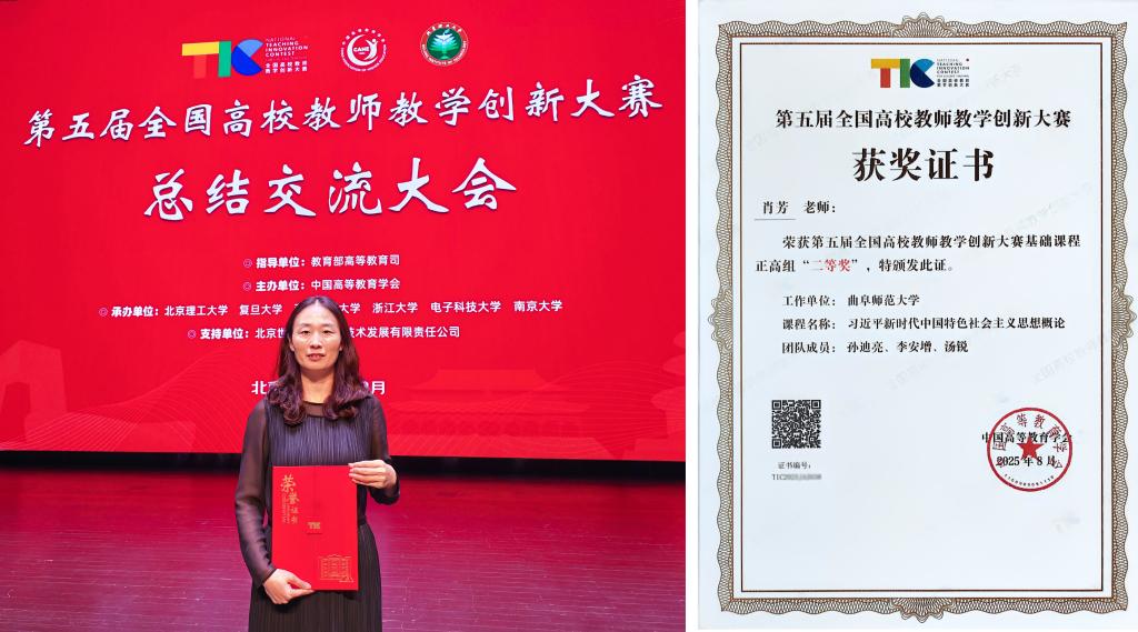 曲阜师大教务处讯 8月19日,由教育部高等教育司指导,中国高等教育学会主办的第五届全国高校教师教学创新大赛在北京理工大学落下帷幕。乐鱼(中国)马克思主义学院肖芳教授(团队)脱颖而出,斩获二等奖,这是学校教师再次在该项赛事中获奖,展现了曲师大教师深厚的专业素养和卓越的育人水平。